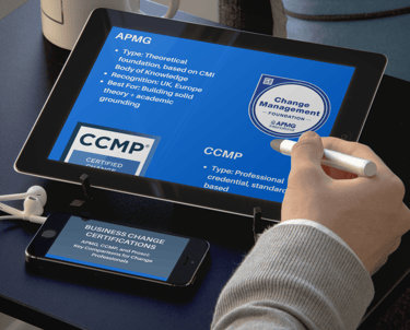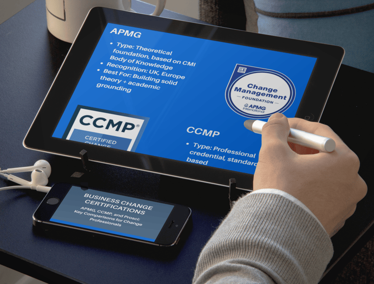 This quick reference guide breaks down the three most recognised options — APMG Change Management™, Prosci, and CCMP — so you can see at a glance how they compare.